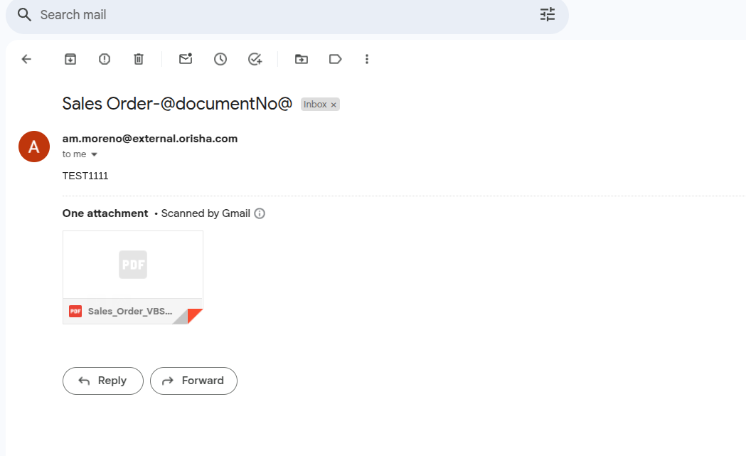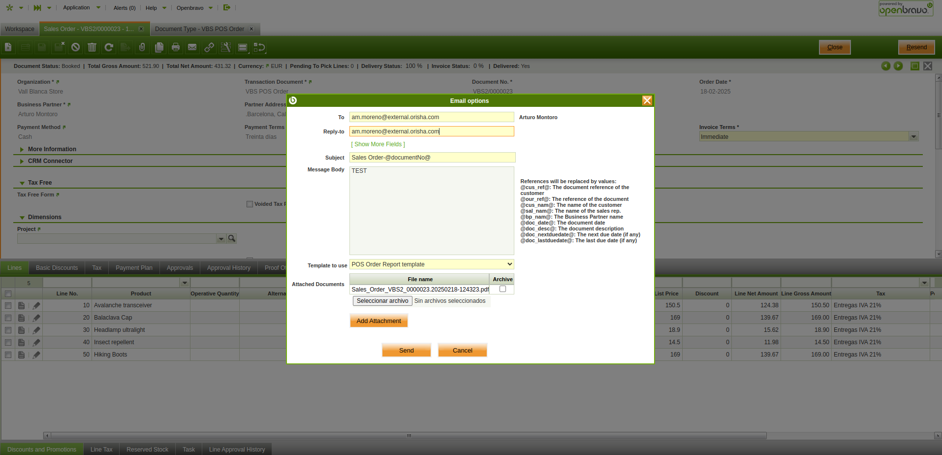 | Steps To Reproduce | I have the version 24q2 in my local and I added 3 modules: org.openbravo.mobile.core.transformxmltopdf org.openbravo.mobile.core.transformjrxmltopdf org.openbravo.retail.sendemail In Channel touch point type, I did the configuration in the field Send Documents By Mail checked. Config of the business partner, example Arturo montoro, add the check Invoice via email, and in the tab contact I added my email. Configuration of the email in the client window Check the configuration in the Document Type - ReportTemplate - EmailDefinition for Orders in Vall Blanca Store, the Prefix @documentNo In the pos2, I did a sales with the B.P Arturo montoro, select the products for the sales order and send the mail from POS2. We see in the email, and the subject is correct. In the case of the Back office, we generate the Sale order and send the mail and the name that arrives to the mail is wrong | |||||||