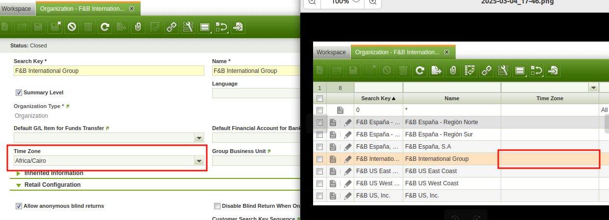 | Description | In the Organization window, the value of the field "Timezone" is not displayed in grid mode | |||||||