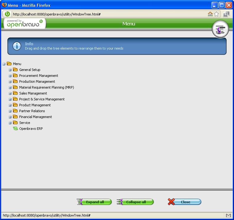 DescriptionChanging tree config, dragging menu items around and then hitting CLOSE, saves the tree layout. Why don´t we have SAVE and CANCEL instead? There is no confirmation whatsoever. This can lead to serious problems, I accidently moved GENERAL SETUP to a deep end in the tree.