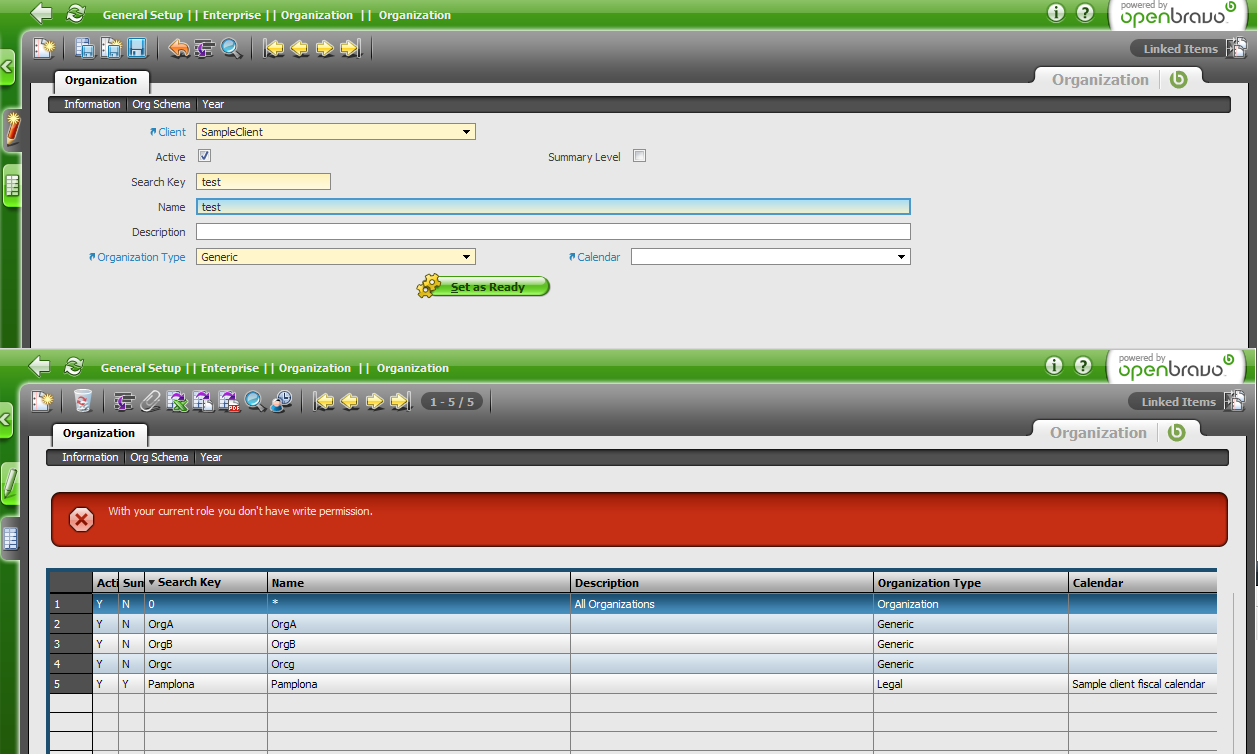 | Steps To Reproduce | 1. Go Enterprise > Organization > Organization 2. Create a new Organization by filling all mandatory fields. Do not save. 3. Click on Set As Ready button. Since Autosave feature is enabled, clicking the message should be the same as clicking Save button and then the action button. 4. A wrong message is displayed. The organization is created, but the action of the button was not thrown. | |||||||