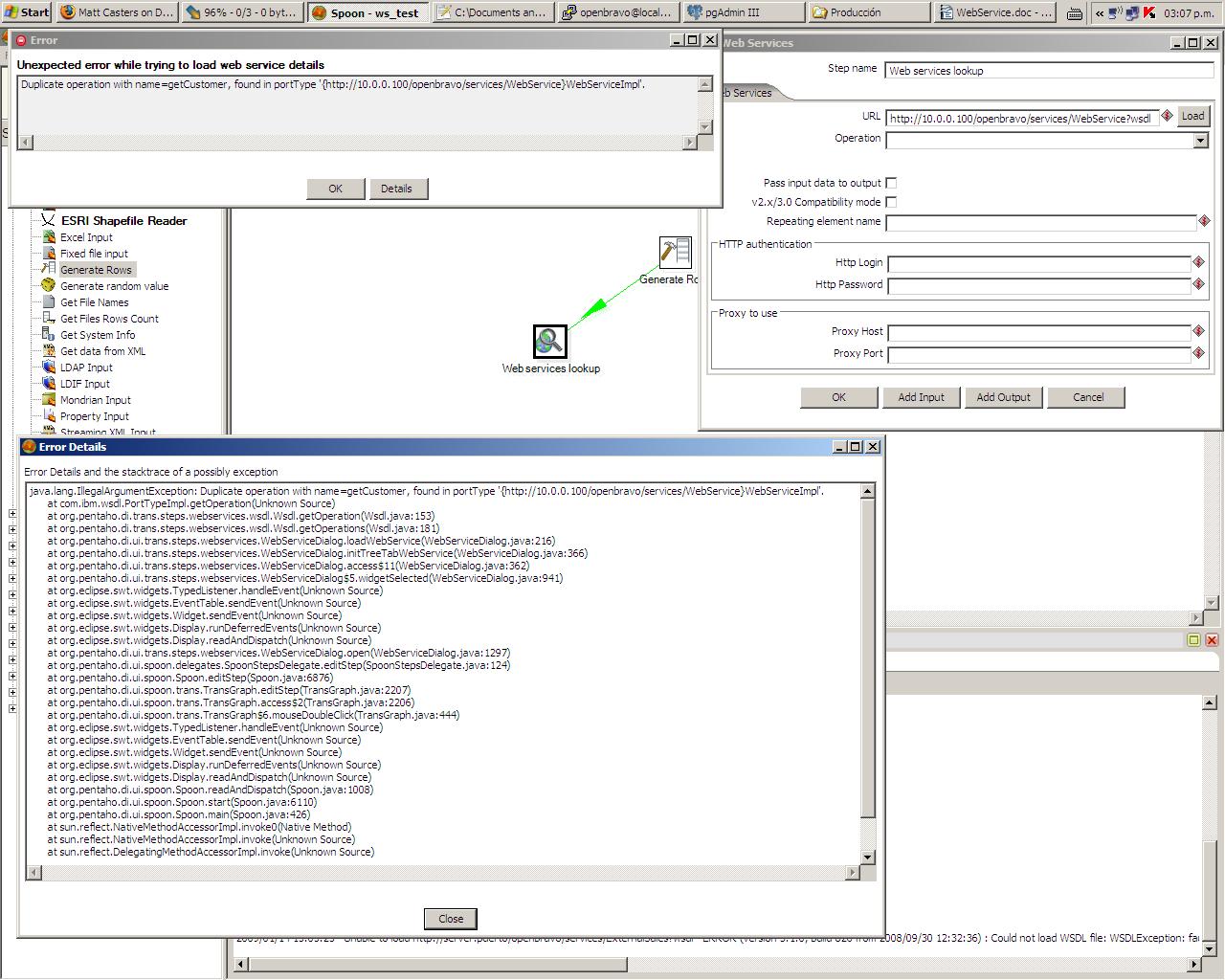| Description | When accessing OB Webservice with Kettle. I receive an error saying , it´s not permited. Because, have a duplicated method. | |||||||