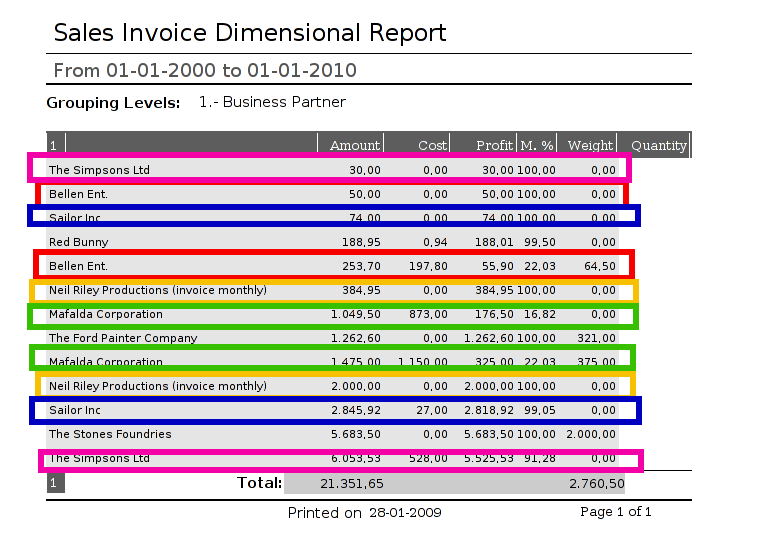 | Summary | 0007141: Sales Invoice Dimensional Report doesn't group by business partner when sorting. | |||||||