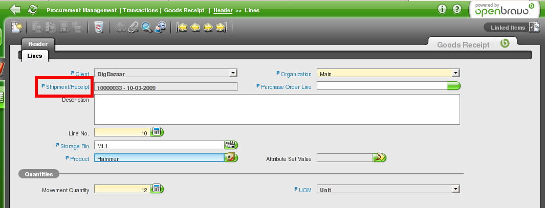 DescriptionIn Goods Receipt Line, label Shipment/Receipt should display Goods Shipment when it is a sales window and Goods Receipt when it is a purchase window (in the same way that label Sales Order Line when it is a sales window and Purchase Order Line when it is a purchase window)
