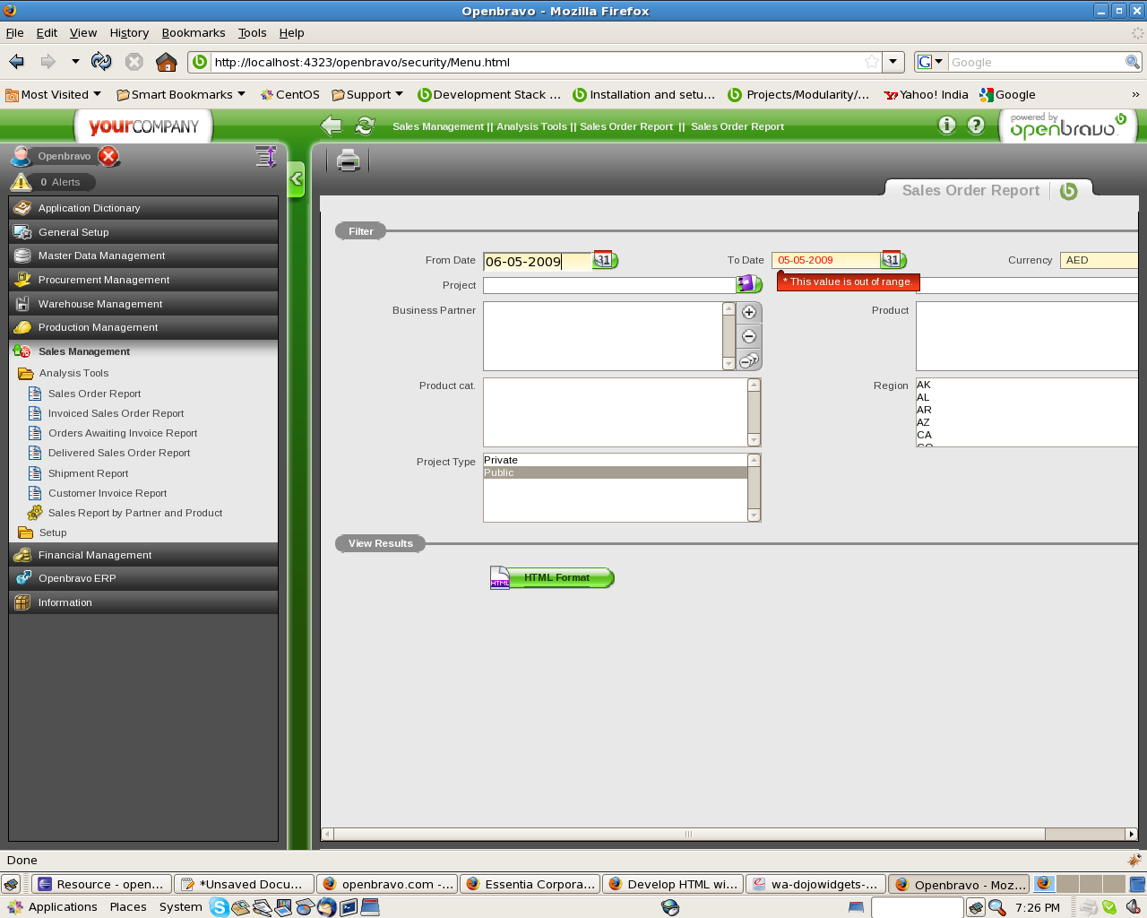 4) Then Go Sales Management || Invoiced Sales Order Report || Give incorrect date range(from date is greater than the todate)