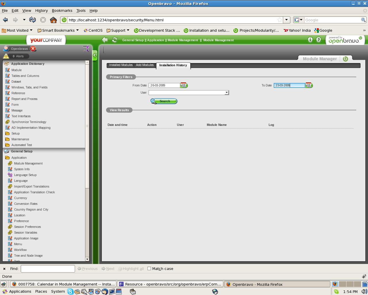 Steps To Reproduce1) Move to General Setup || Application || Module Management || Module Management|| Installation history page.