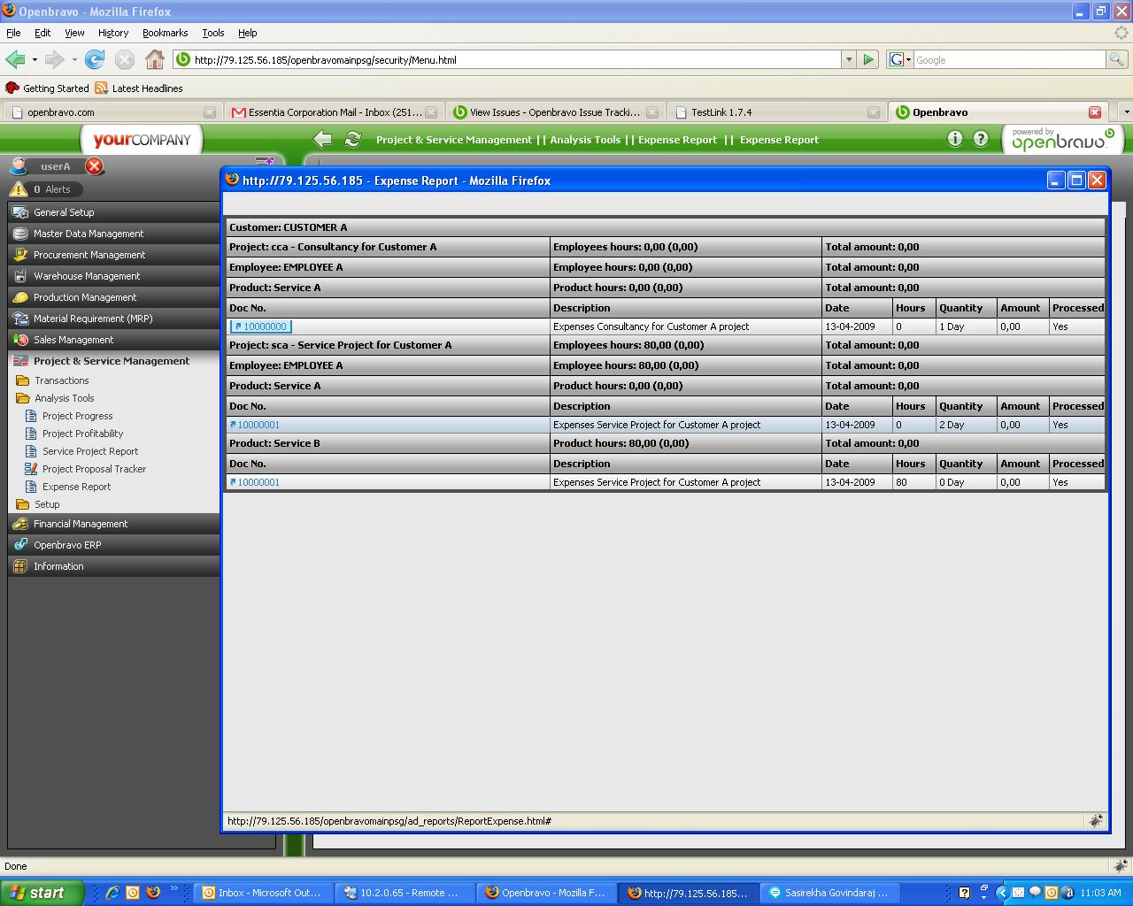 | Steps To Reproduce | # Login as userA # Go to Project & Service Management->Analysis Tools ->Expense Report # Click HTML Format Expense Report is displayed with document number links. If we click on the document links it won't go the required page. | |||||||
