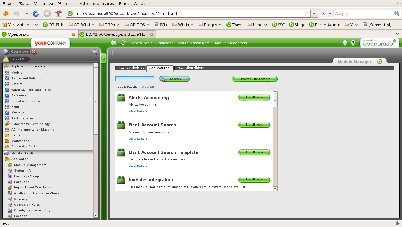 | Description | Hello, If you go to: General Setup || Application || Module Management || Module Management The list of modules is shown is a fixed size window. It will be good if the window takes as much height it cans, to allow you to browse as much modules as possible. See screen capture attached. Thanks, Jordi, | |||||||||||