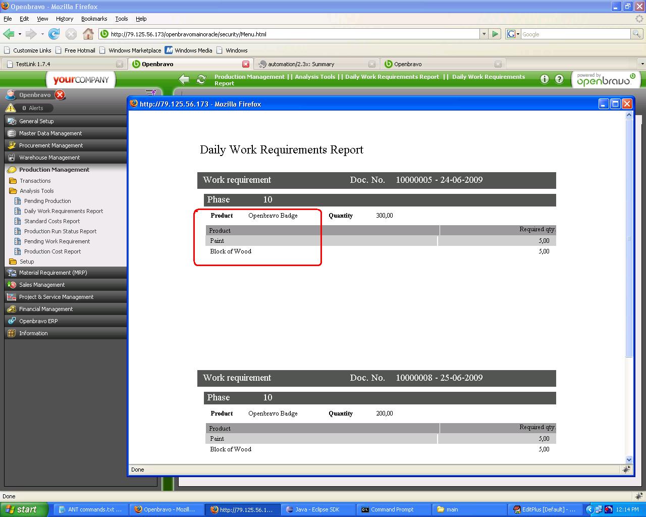 Steps To ReproduceGo to Production management->Analysis Tools-> Daily Work Requirements Report