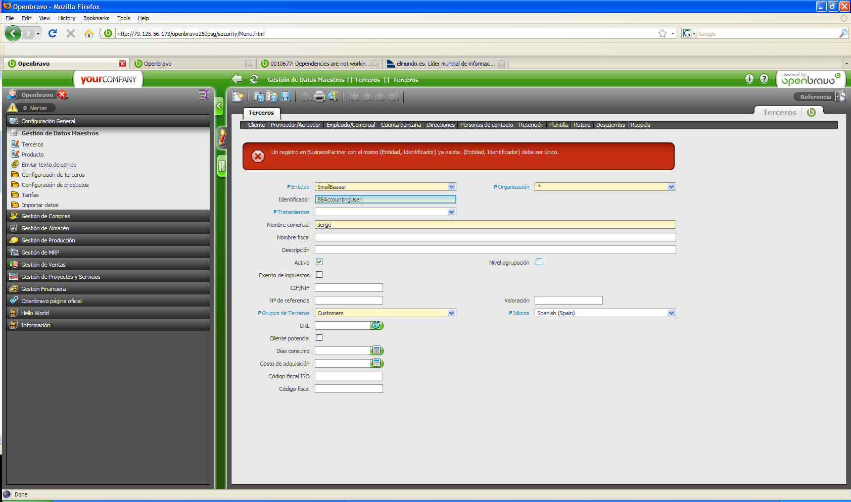 2009-10-13 15:07 hgbot Fixed in SCM revision http://code.openbrahttp://forge.openbravo.com/projects/languagemodulespanish/module [^] => http://code.openbravo.com/erp/devel/pi/rev/61fda85efacfc968daae6b6b188209a18bd39d3a [^]